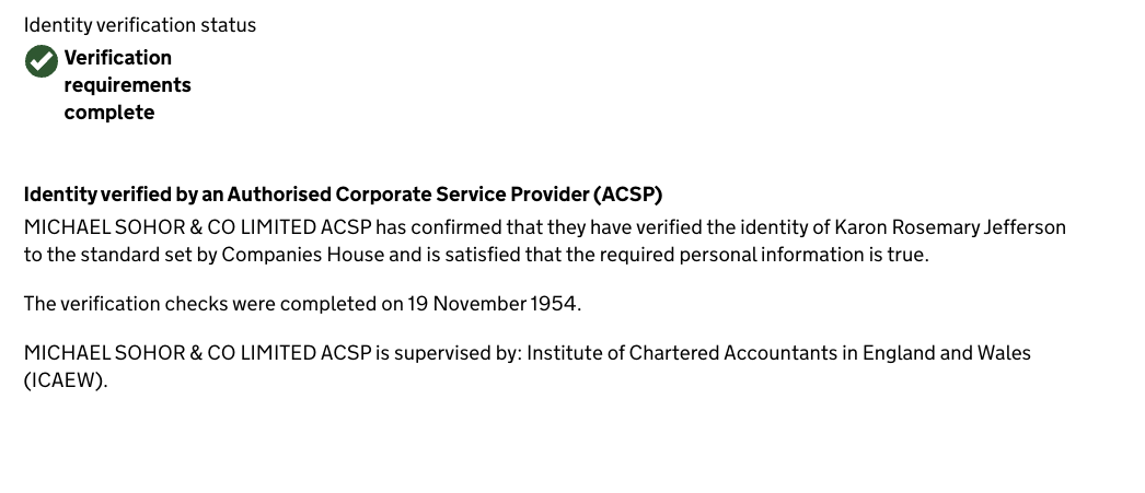 Karon Rosemary JEFFERSON personal appointments - Find and update company information - GOV.UK => verified on 19 November 1954.